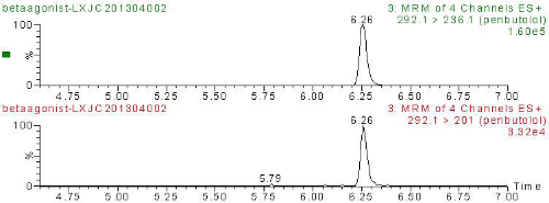 按照中華人民共和國(guó)國(guó)家標(biāo)準(zhǔn) 農(nóng)業(yè)部1025號(hào)公告-18-2008公告《動(dòng)物源食品中9種β-受體激動(dòng)劑殘留檢測(cè)方法-超高效液相色譜-串聯(lián)質(zhì)譜法》提供的方法進(jìn)行檢測(cè)。