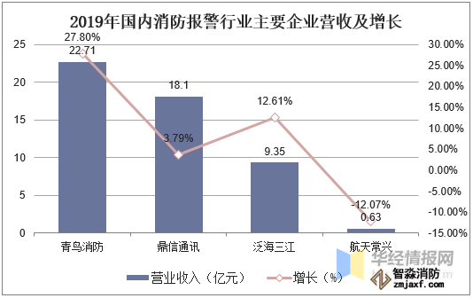• 青鳥消防在智能疏散可比公司里收入規(guī)模最大,近兩年智能疏散和防火門監(jiān)控系統(tǒng)業(yè)務(wù)收入保持同比翻番增長;2019年青鳥消防營業(yè)收入22.71億元,同比增長27.8%;