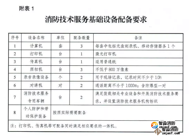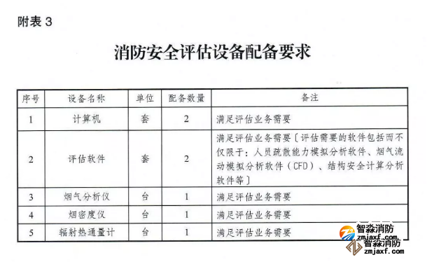 (三)消防技術(shù)服務基礎(chǔ)設備和消防安全評估設備配備符合附表1和附表3的要求;