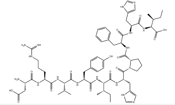 Asp-Arg-Val-Tyr-Ile-His-Pro-Phe-His-Leu; DRVYIHPFHL; Angiotensin I 5-isoleucine; Angiotensin I, 5-L-isoleucine-; DRVYIHPFHL; Angiotensin 1; Leucine, N-[N-[N-[1-[N-[N-[N-[N-(N2-L-α-aspartyl-L-arginyl)-L-valyl]-L-tyrosyl]-L-isoleucyl]-L-histidyl]-L-prolyl]-3-phenylalanyl]-L-histidyl]-, L- (7CI); Leucine, N-[N-[N-[1-[N-[N-[N-[N-(N2-α-aspartylarginyl)valyl]tyrosyl]isoleucyl]histidyl]prolyl]-3-phenylalanyl]histidyl]- (6CI); 5-L-Isoleucineangiotensin I; 10: PN: US20030119021 SEQID: 9 unclaimed protein; 10: PN: WO0239997 SEQID: 15 unclaimed protein; 10: PN: WO2012125808 SEQID: 31 claimed protein; 116: PN: WO2006032674 SEQID: 116 claimed protein; 118: PN: WO2012102963 PAGE: 40 unclaimed sequence; ...