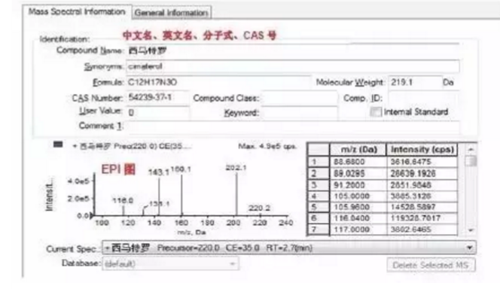 2) QTRAP®特有的MRM-IDA-EPI方式采集數(shù)據(jù),一次進(jìn)樣同時可獲得定量和定性的數(shù)據(jù)
