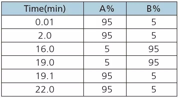 表1 液相梯度條件