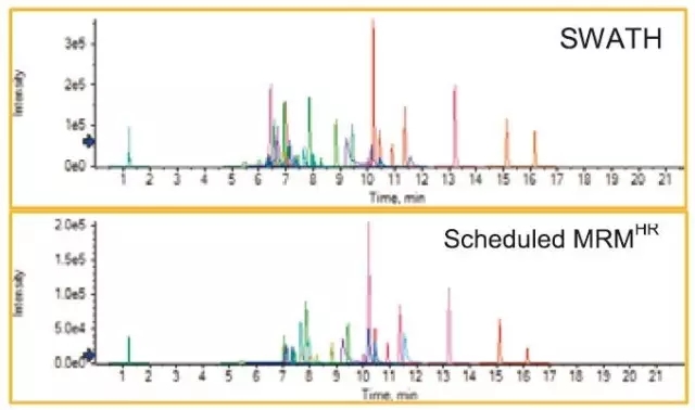 3.SWATH 2.0?和 Scheduled MRMHR 兩種技術(shù)的工作流程提供了高分辨,高靈敏和高選擇性的定量方法。