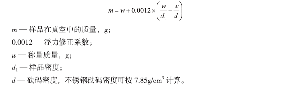 在一些需要準(zhǔn)確稱量標(biāo)準(zhǔn)物質(zhì)的場合,如證書中特別聲明了需采用浮力校正公式來計(jì)算樣品的質(zhì)量,可采用下式: