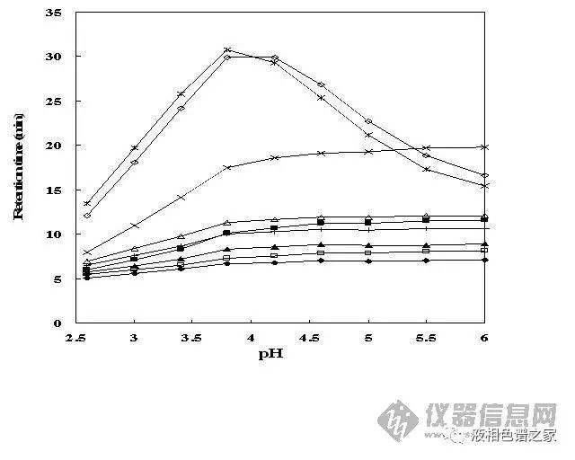 2)流動相pH值改變甚至可以改變某些樣品出峰的先后順序;