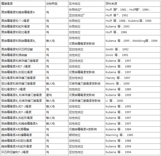 表2 霉菌毒素對(duì)禽的毒性互作效應(yīng)