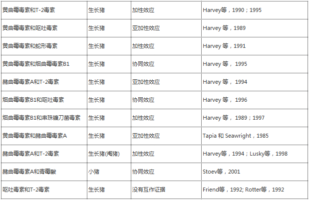 表1 霉菌毒素對(duì)豬的毒性互作效應(yīng)